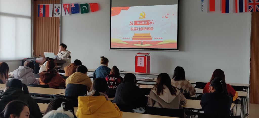 在入党积极分子发展为预备党员环节,组织委员孙彦文同志代表支委会宣读了拟吸收积极分子名单,入党积极分子依次陈述入党申请书,入党介绍人汇报综合考察意见,在现场正式党员进行无记名投票表决后,支部书记胡晓丹同志代表支委会宣读表决结果并宣读大会决议。