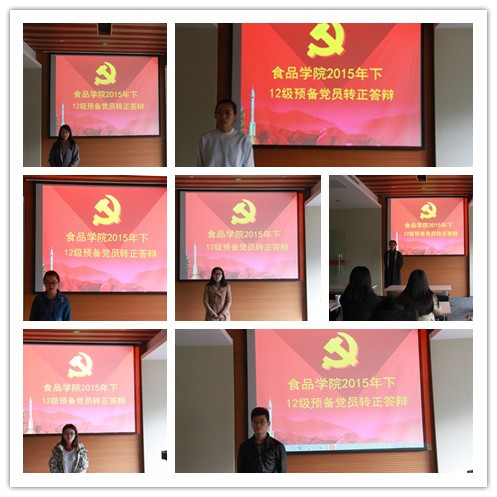 此次答辩会答辩过程分为个人陈述、现场问答、进行评议三个环节。答辩会上八名预备党员分别根据学校文件精神,近期拟转正的八位预备党员分别就其预备期一年内思想、学习、工作和生活情况做出了总结,并结合十八届三中、四中、五中全会精神讲述了自己的理解。随后答辩就十八大动态、新党章的修改、如何保持党员先进性及个人学习、工作等相关内容对每位预备党员进行了提问。预备党员就有关如何做好目前各项工作、如何以实际行动来做好党员的模范带头作用和如何在日常生活中宣传弘扬党的精神等问题做出相应回答。整个答辩过程气氛热烈,预备党员们的良好表现得到了答辩小组成员的认可。