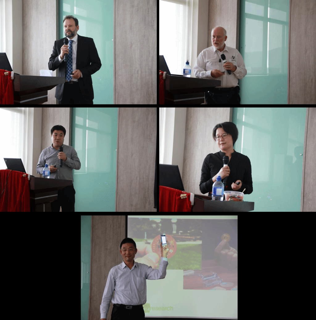 来自新西兰代表团的Phil博士详细介绍了新西兰-中国食品安全网络和新西兰食品安全科学研究中心的概况,重点强调NZCFPN是政府、工业和科研多方结合的伙伴关系,期待加深与中国的伙伴关系。Graham博士介绍了所在团队在食品安全,加工和储藏技术方面的相关研究,并阐述了食品安全可能面临的挑战及可行的解决办法。王周平教授做了“基于纳米探针计划的食品有害物检测技术”报告,系统汇报了纳米探针技术在食品安全监测中的研究进展和前景。张虹研究员做了“传感器和可追溯性技术”报告,并现场演示互动使用传感器检测食品原料中的营养素含量。姚卫蓉教授做了“植物源天然防腐剂的研究和应用”报告,介绍了植物精油天然防腐剂对白菜软腐菌抑制作用取得的进展,并与现场嘉宾进行交流互动。