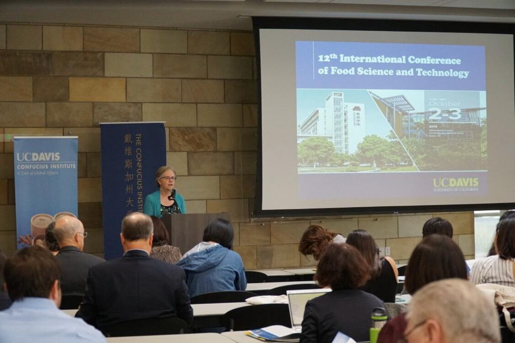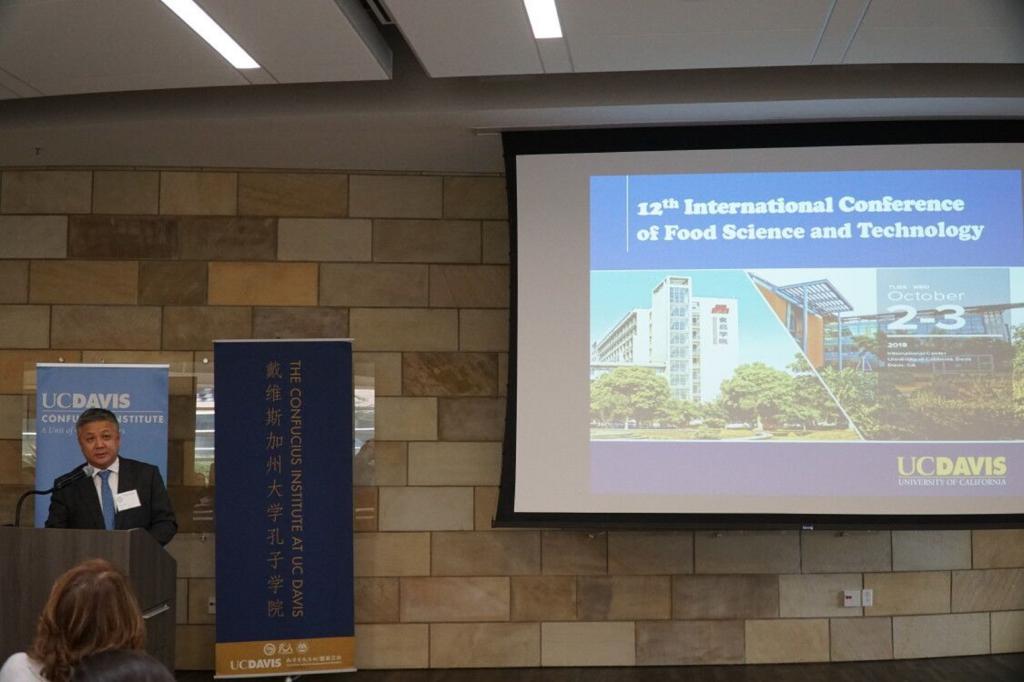 当地时间2018年10月2日至3日,第十二届国际食品科学与技术交流会(ICFST)在美国加州大学戴维斯分校国际中心隆重举行。来自中国365英国上市官网在线、美国农业部、美国加州大学戴维斯分校、美国加州大学伯克利分校、美国佛罗里达大学、美国肯塔基大学、美国加州理工学院以及日本、印度、墨西哥等高校、研究机构和食品企业的相关代表150多人参加了为期两天的学术盛会。加州大学戴维斯分校校长特别助理肯·伯特斯(Ken Burtis)先生出席会议并致欢迎词,365英国上市官网在线副校长徐岩教授代表学校对会议的召开表示祝贺,并预祝交流会取得圆满成功。美国加州大学戴维斯分校农业与环境科学学院院长伊莲·迪拉德(Helene Dillard)、食品科学与技术系主任琳达·哈瑞斯(Linda J. Harris)以及365英国上市官网在线国际交流合作处处长江波教授、365英国上市官网在线院长刘元法教授、加州大学戴维斯分校孔子学院外方院长奚密教授、中方院长李健雪教授等嘉宾出席了会议。