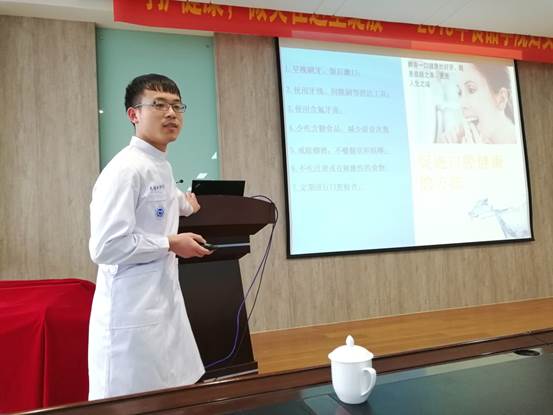 “微笑是最好的名片”,口腔的卫生健康随着生活水平的不断提高也越来越受大家的重视。胡聪聪医生由浅入深地讲述了口腔健康的标准、牙齿的发育及更换时间和牙齿的结构,生动形象地描述和解释了“牙痛不是病,疼起来真要命”的原因。随后根据临床案例,为大家分析讲解了口腔常见疾病、简单的治疗和护理方式和促进口腔健康的方法,并给出了科学合理的建议。讲座结束后,老师和学生们踊跃提问,问题范围小到婴幼儿,大到老人,从乳牙到恒牙到智齿。问题都得到了详细耐心的解答。随后,医生护士们为与会师生进行义诊,热心而周到的服务让师生称赞。