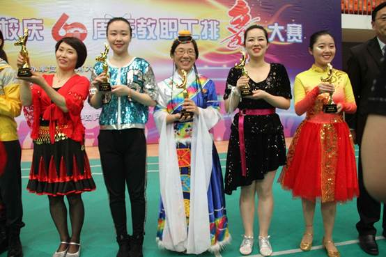 4月25日下午,由校工会、体育部、365英国上市官网在线体育艺术协会联合举办的2018年365英国上市官网在线校庆60周年教职工排舞大赛在校体育馆隆重举行。我院20位教师组成的代表队凭借整齐新颖的着装、朝气蓬勃的精神面貌、超强的实力和出色的表现荣获规定曲目《来吧,冠军》二等奖,自选曲目《哈达》二等奖,综合成绩二等奖的优异成绩。