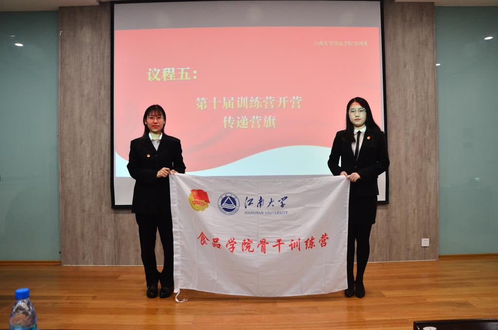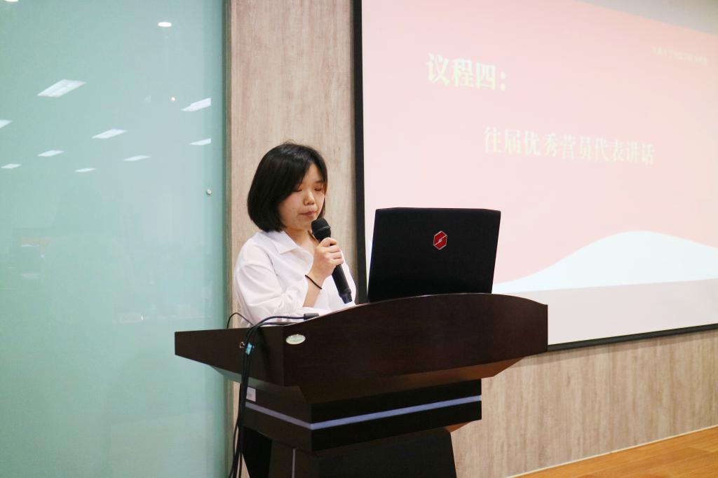 接下来,第九届营员粱玉燊同学与第十届营员夏远芳同学进行青马营旗交接仪式。陈晨同学代表第十届青马营员发表讲话,陈同学分享了习近平总书记在北大讲话时提出的四项要求,激励同学们身体力行的做好团学领头人,鼓励同学们在训练营中磨练自己,提高思想水平。