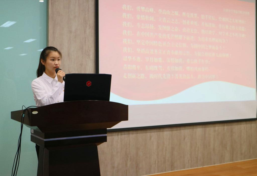 随后青马营员代表朗诵《少年中国说》,并重温入团誓词。姚建萍同学生动形象的描述了自己当初选择青马的初衷,回忆了第九届青马训练营举行的各项活动,启迪营员们要不忘初心、牢记使命,纯粹做事,理性自我。