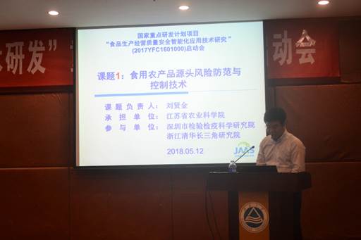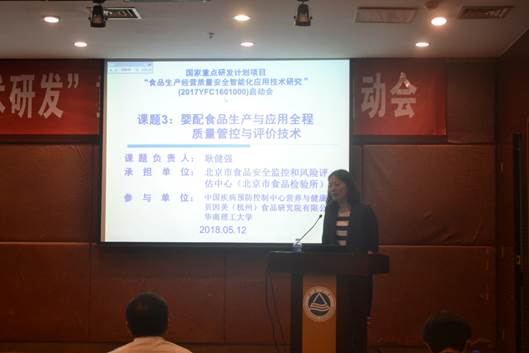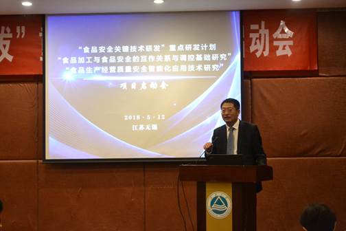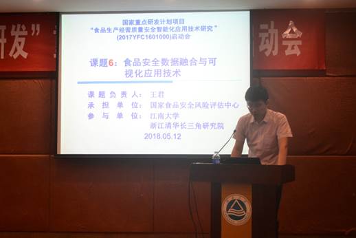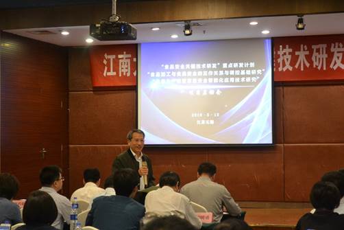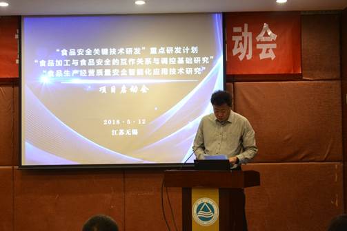 由365英国官网承担,金征宇教授主持的“食品安全关键技术研发”重点研发计划项目“食品生产经营质量安全智能化应用技术研究”(2017YFC1601000)启动会,于2018年5月12日,在365英国上市官网在线长广溪宾馆召开。365英国上市官网在线校长陈坚、副校长陈卫、中国生物技术发展中心处长付卫平、中国生物技术发展中心项目专员董华,项目特邀专家孙远明、叶兴乾、胡秋辉、邹小波、陈颖,葛宇等6位教授以及来自12家项目参与单位的近40人参加了启动会。
