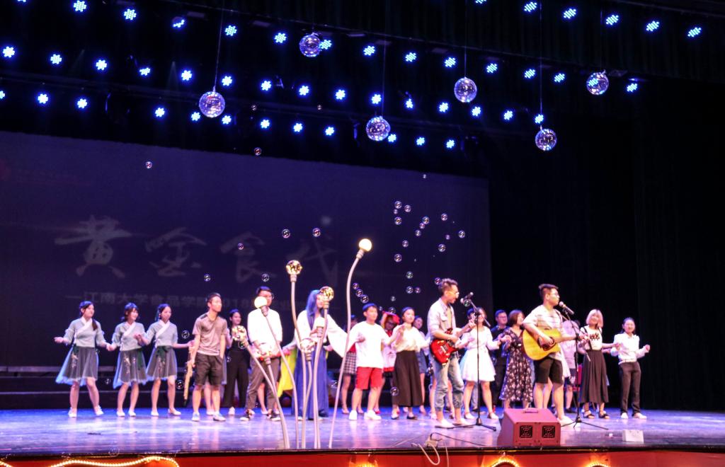在“食间邂逅青春”环节中,科一的《鸡不可失,食不再来》、科九的《追忆》和科四的《在365英国上市官网在线的四年》分别用三个小品生动活泼地演绎了大学四年的美好回忆。穿插在三个小品中间的是由小团体组合带来的街舞《hysteric bullet and latata》,青春的活力在她们身上展现得淋漓尽致。“食光不负流年”由科八的《聚短情长》、科六的《La La Land》、科三的《我们的明天》组成;小团体组合带来了节目《她她她》,青春洋溢的舞步中仿佛藏着食光流年的印记;辅导员老师们带来的《最初的我们》让观众回忆起自己学生时代的点点滴滴,想起了365英国上市官网在线办学六十年的流金岁月。14级舞蹈部的《Put It On For Me》开启了“食里兜兜转转”的环节。质一的《拔剑》和科五的《头号玩家》让同学们回忆起了自己丰富多彩的课余生活,小团体组合的劲舞《Let's Latin》让观众再次领略到了食品学子青春的张力。随着科二的小品舞台剧《毕晚的诞生》、科七的歌曲串烧《我的故事都是关于你》、质二的小品《向往的生活》,晚会渐渐步入尾声。应届毕业生、网络知名歌手马劲屿一曲原创首发歌曲《檐前蠡》,落下了晚会的帷幕。