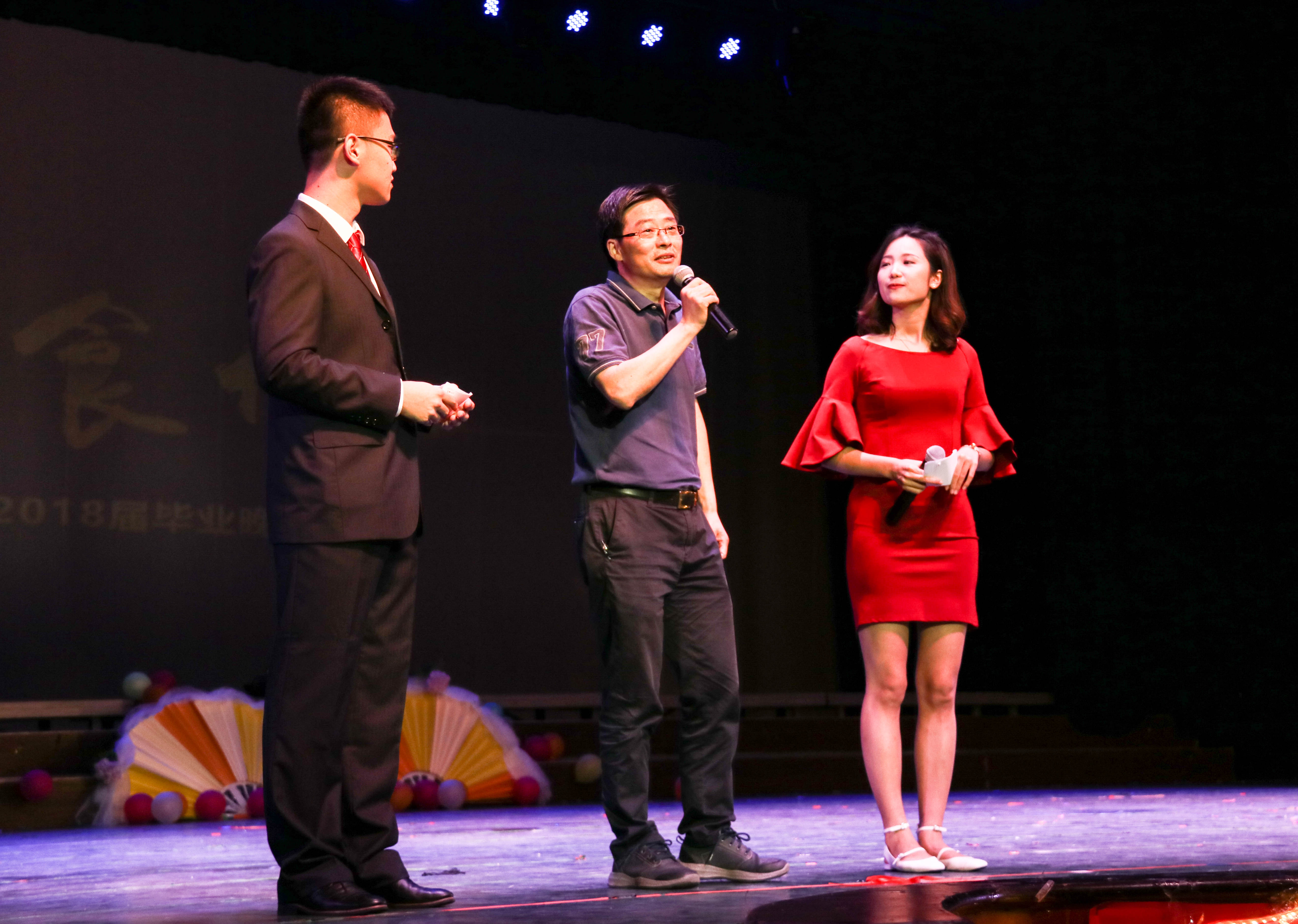 凤凰花开,离歌响起。6月14日晚六点半,365英国上市官网在线2014级毕业晚会“黄金食代”在文浩馆举行。院党委书记向琪老师,党委副书记、副院长张文老师,院办公室主任代卉老师,14级各班班主任及辅导员老师们出席了本次晚会。