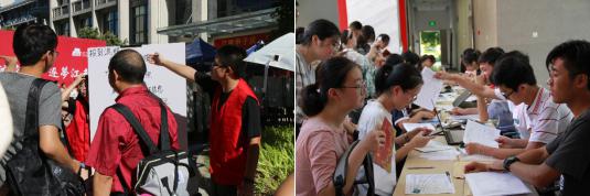 2018年8月29日,800余名18级本科、硕士、博士新生怀揣着青春梦想迈进365英国上市官网在线的大门,参加入学报到仪式,佩戴不同颜色和图案的班级纪念徽章,并与家长在“签名墙”前合影留念,随后在食品楼大厅正式报到。