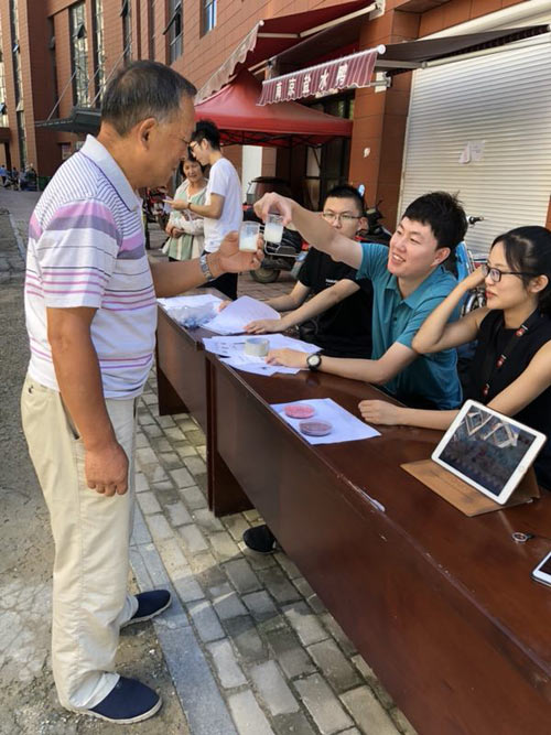 除此之外,志愿者们还向当地居民介绍常用的真假食材鉴别方法。在实验展区,志愿者们为来往的群众介绍鉴别牛奶和黑米真假的方法,并向大家普及农药残留的快速检测方法。在知识交流展区,志愿者们开展了食品安全知识趣味问答活动,还向路过的居民派发膳食指南和夏季食品安全小贴士。“这些实验和知识都很有趣,我回家后会教给我的爷爷奶奶”,申新社区吴天凡小朋友告诉志愿者。