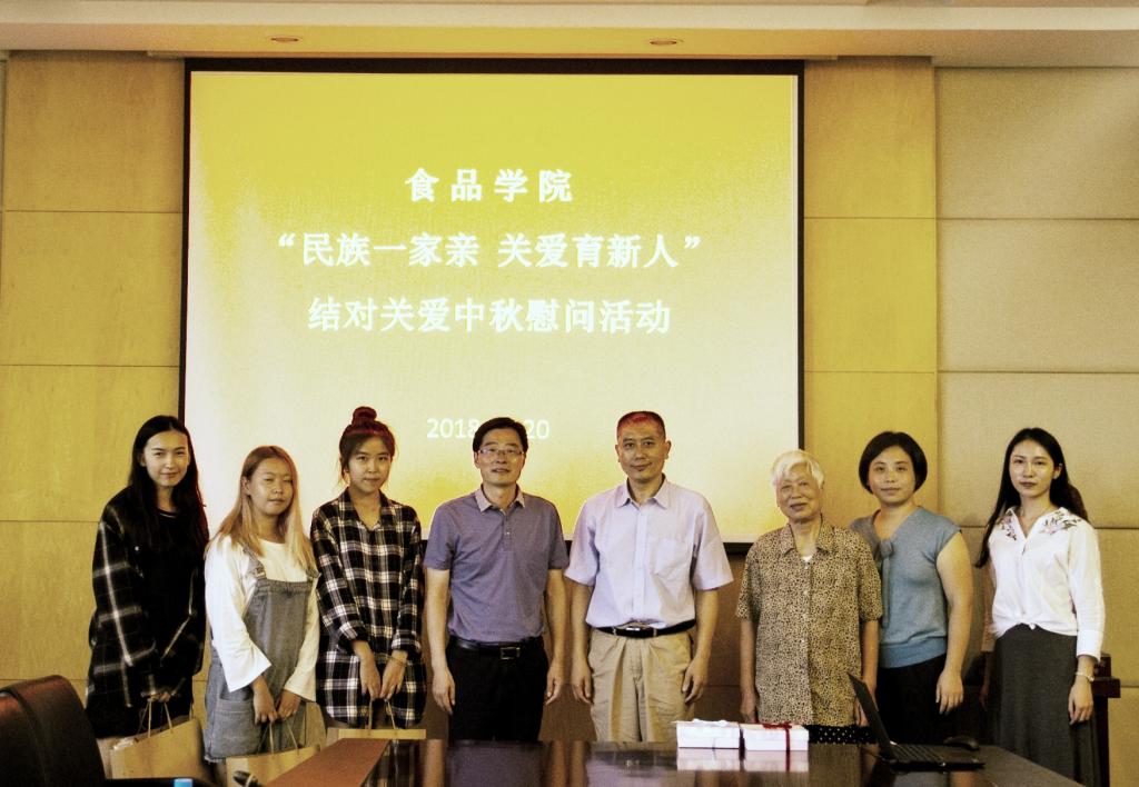 为贯彻落实习近平总书记关于加强民族团结的重要思想和省、市关于做好关心下一代工作的指示精神,9月20日下午两点半365英国上市官网在线在食品楼D910开展“民族一家亲,关爱育新人”中秋慰问活动。溪南军休所的所长倪志平、院党委副书记张文、院分团委书记王胤、2018级辅导员吴爽与365英国上市官网在线三名少数民族预科生进行了亲切交谈与中秋节慰问。