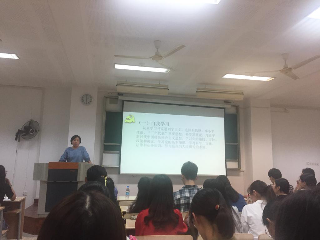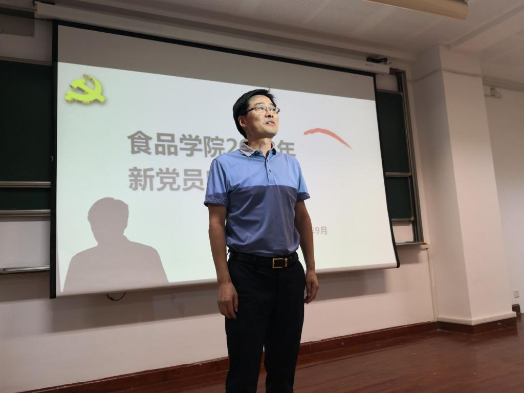 紧接着,分团委书记王胤老师分别从“自我学习”“个人义务”“组织生活”三个方面对新生党员提出了要求。王胤指出,在自我学习方面,党员要继续努力学习党的先进理论,努力提高为人民服务的本领;在个人义务方面,各党支部要践行党的“三会两制一课”制度,预备党员要及时向党组织汇报个人思想动态;在组织生活方面,要铭记作为一名共产党员的职责,要在各类活动中献计献策,发挥党员作用。最后,王胤还以食硕1501党支部为例,鼓励各新生党支部建立有特色的支部文化和品牌活动。