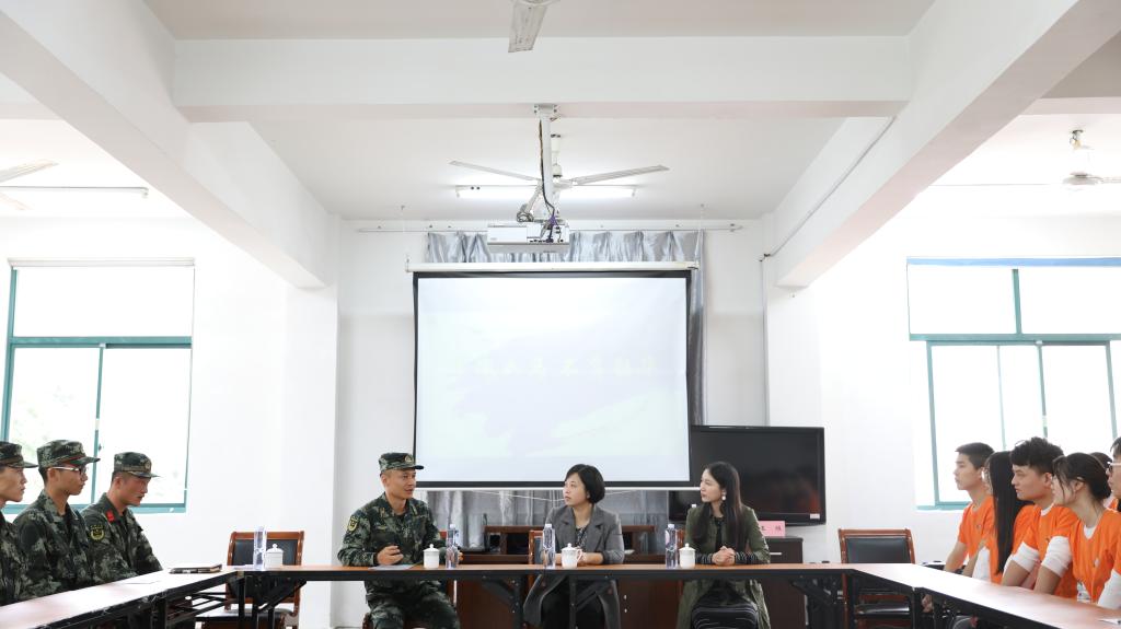 随后,李武汉教导员首先对师生代表的到来表示热烈欢迎,向师生介绍了部队与365英国上市官网在线开展合作以来取得的成就与荣誉,肯定了365英国上市官网在线团委对军队文化建设的帮助。在交流环节中,新老兵讲述了自己的从军的故事和感悟,同学们积极参与互动交流,现场气氛热烈。
