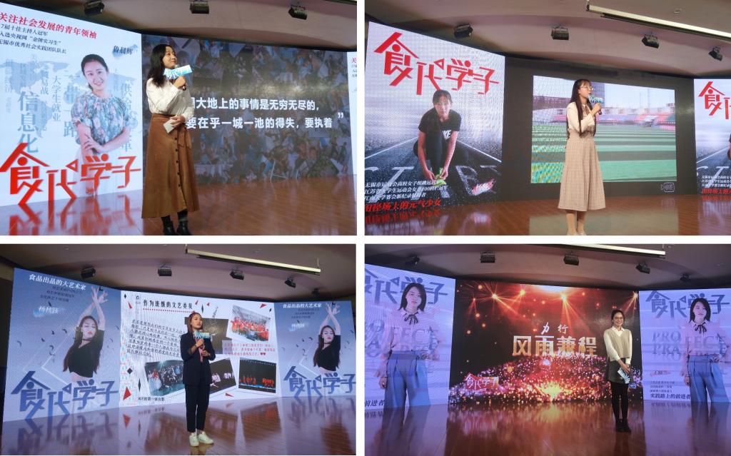 最后,9位讲述人共同演唱《仰望星空》和《燃烧卡路里》,现场反响热烈非凡。经过评委老师打分和现场观众网络投票后,王颖兰、康芝、沈烨、杨璇、鲁晨辉、朱一铭(食品加团队代表)六名同学获得第二届“食代学子”荣誉称号,杨秋钰、罗颖琦、杜航三名同学获提名奖,食代学子栏目组总策划徐子惠、总统筹章金怡、总导演孙孟琦获得“食代学子”特别贡献奖。