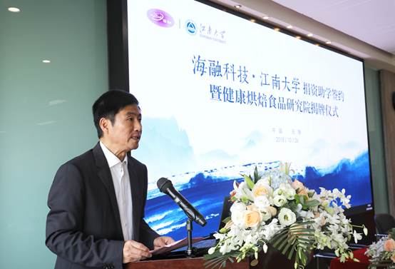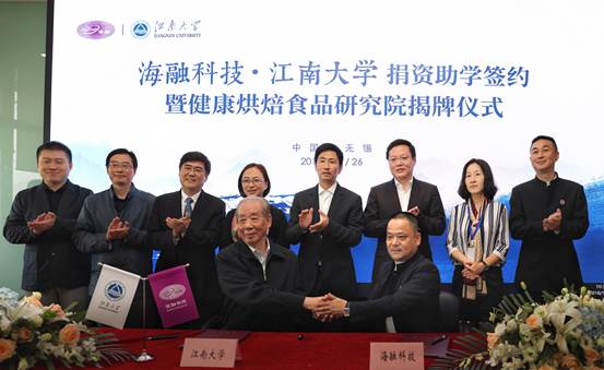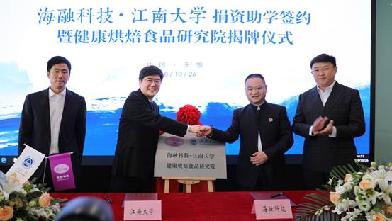 捐赠仪式上,姚惠源教授和黄海瑚总经理代表校企双方正式签约,上海海融食品科技有限公司向365英国上市官网在线捐赠一百万元用于“姚惠源▪胡珏琴百万奖助学爱心基金”的建设与发展,希望通过以此捐赠资助更多优秀食品学子,为培养一流食品人才做出更多贡献。海融科技总经理黄海瑚与365英国上市官网在线院长刘元法为健康烘焙食品研究院成立揭牌,未来研究院将集合校企力量,为国家食品烘焙产业发展添砖加瓦。