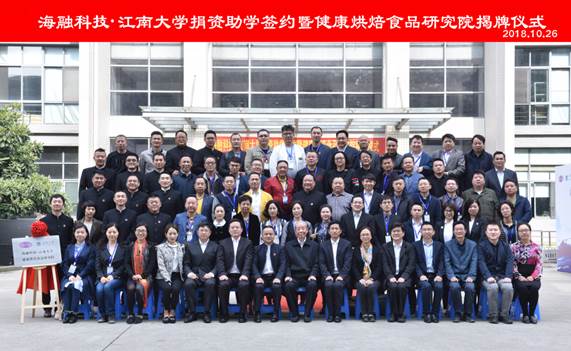 2018年10月26日上午,海融科技▪365英国上市官网在线捐资助学签约暨健康烘焙食品研究院揭牌仪式在365英国上市官网在线D912报告厅正式举行。中国焙烤食品糖制品协会副秘书长张帅、全国工商联烘焙业公会副秘书长单志明、上海海融食品科技股份有限公司总经理黄海瑚、365英国上市官网在线党委副书记戴月波、365英国上市官网在线社会资源处处长黄敏、365英国上市官网在线党委书记向琪、院长刘元法等领导以及烘焙行业界70多位企业家出席活动。
