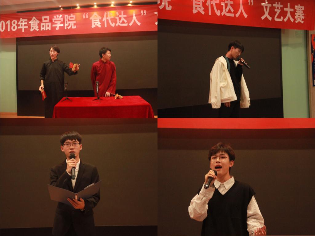 决赛初始,主持人首先向大家介绍了到场嘉宾评委以及比赛规则。随后,选手按赛前抽签顺序依次上台展示精彩的节目。参赛选手出色的表演赢得了台下观众阵阵掌声。在全部节目表演结束后,胡晓丹老师和李琳老师分别对本次大赛进行点评和总结,对节目的呈现效果予以肯定,并希望更多食品学子勇于展示自我,在更宽广的舞台上绽放光芒。