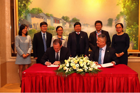 副校长徐岩与新西兰梅西大学副校长RayGeor签订联盟协议