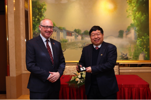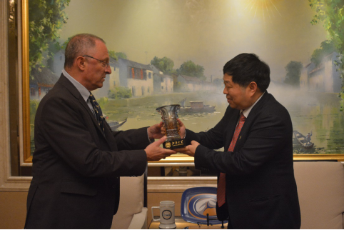 陈坚校长与爱尔兰考克大学副校长PaulMcSweeney交换礼物