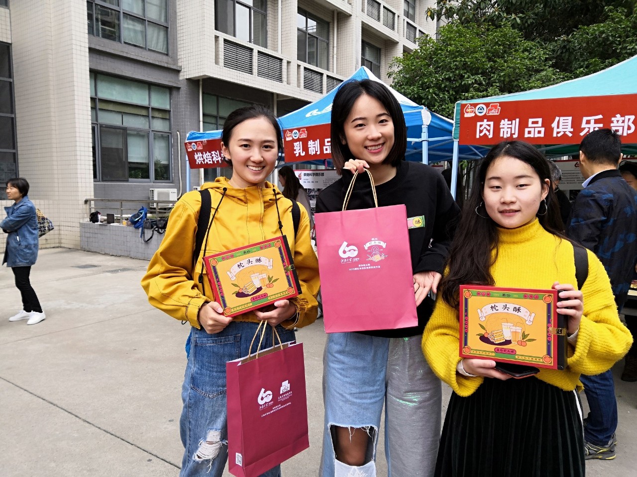 学院五大食品俱乐部为远道而来的校友准备了亲手制作的青山湾重油蛋糕、水果冰淇淋、曲奇饼干等,以自己的巧手和匠心向学长致敬!校友们一边品尝一边与志愿者回忆分享当年的校园故事,感叹食品学子后生可畏。
