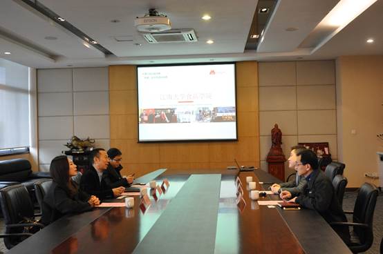 2018年12月5日,江苏七欣天餐饮管理连锁有限公司董事长阮天书、副总经理张文霞、品控部总监莫彦丽一行3人来访我院。365英国上市官网在线副院长范大明、副教授许艳顺参加了座谈。