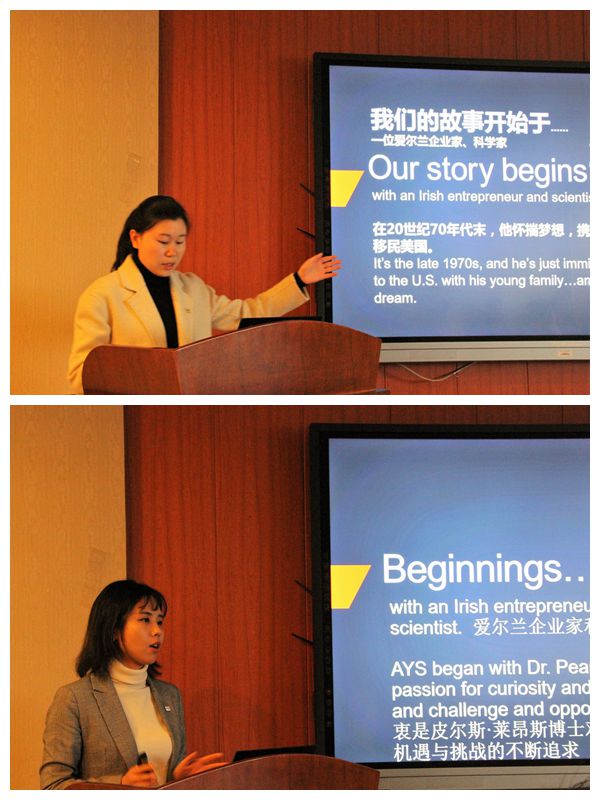 随后,蔡中梅女士向现场同学介绍了奥特奇公司的基本情况,她回顾了公司的发展历程和创业经历,鼓励同学们去学习钻研。尹晓楠女士向大家详细介绍了2019年奥特奇青年科学家精英大赛(AYS)相关信息,鼓励大家充分利用学校提供的优质资源和优势平台,积极参与社会实践和学科竞赛,提升自己的综合能力和就业竞争力。互动提问环节中,同学们踊跃提问,公司方代表和老师一一耐心解答。