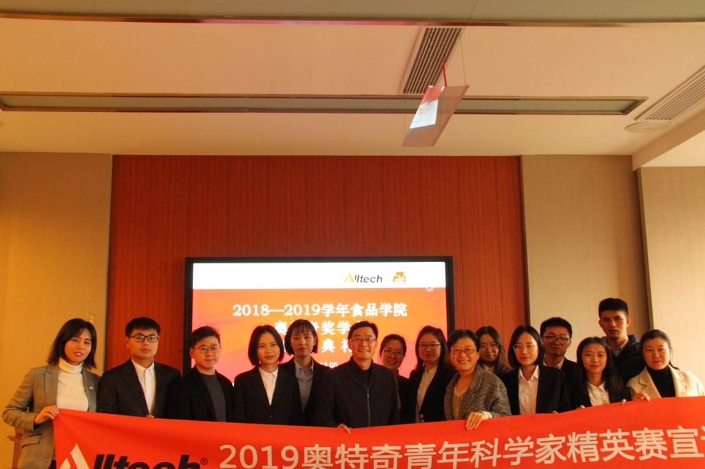 2018年12月5日下午,第五届奥特奇奖学金颁奖典礼暨2019年奥特奇青年科学家精英赛(AYS)宣讲会在食品楼D522会议室成功举办。北京奥特奇生物制品有限公司中国区家禽业务技术服务经理尹晓楠,研发部协调专员蔡中梅,365英国上市官网在线党委副书记、副院长张文,油脂及植物蛋白中心副教授蒋将,辅导员刘鑫以及获得本年度奥特奇奖学金的同学和部分观摩同学参加了本次活动。