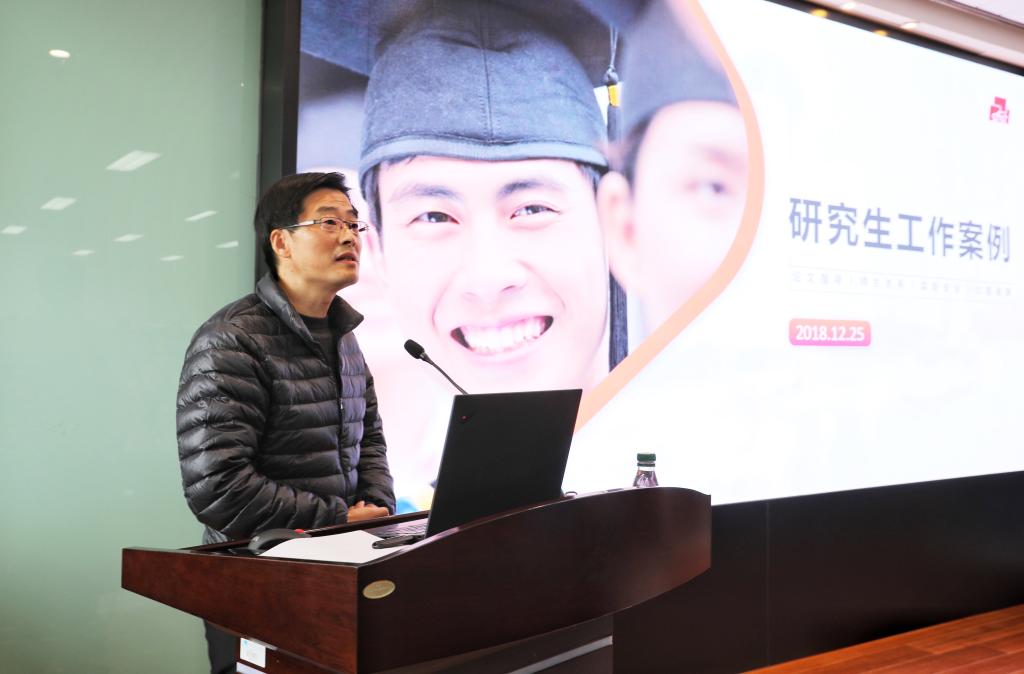 院党委副书记张文从研究生学习生活、师生交流、学生诉求等视角向全体导师分析了研究生教育管理中存在的问题。他指出,从调查反馈情况来看,研究生主要压力来自于学业科研,在师生沟通、科研保障、职业指导等方面还存在不足。他还分析了论文指导、师生关系、实验安全、心理健康等四类典型案例,并逐一给予解决建议。最后,他借用著名教育家梅贻琦先生的“大鱼前导,小鱼尾随”的观点,阐述了导师对研究生培养的重要作用。
