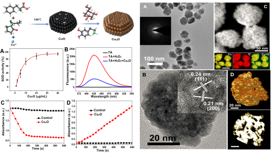 图1苯丙氨酸介导的团簇状氧化铜纳米材料的合成、结构分析及活性氧簇清除活性表征