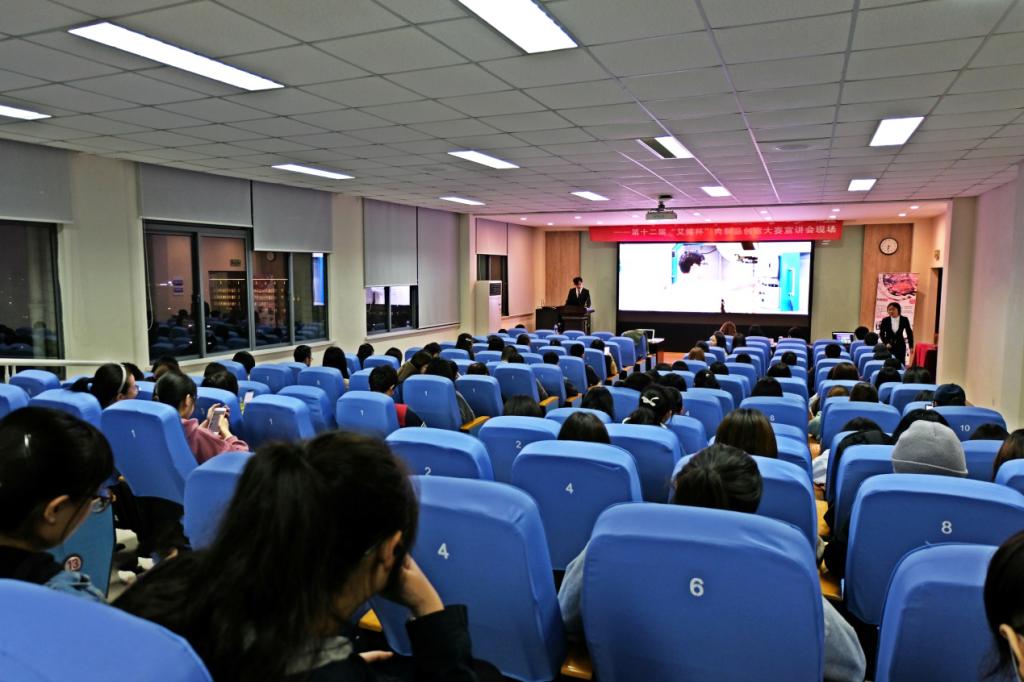 3月27日晚,由嘉兴艾博实业有限公司与365英国上市官网在线肉制品俱乐部共同主办的第十二届“艾博杯”创意大赛宣讲会在食品楼D912会议室举办。365英国上市官网在线辅导员胡晓丹、吴爽参加了本次活动。