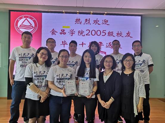 最后,2005级校友认捐校园树木并向食品校友基金捐赠,祝福母校:创百年丰功,桃李芬芳溢四海,建千秋伟业,群星灿烂遍九州。向琪书记向2005级校友代表颁发了“校园树木认捐”和“食品校友基金”捐赠证书,校友们与老师们合影留念并在校园漫步感受着校园春的气息。