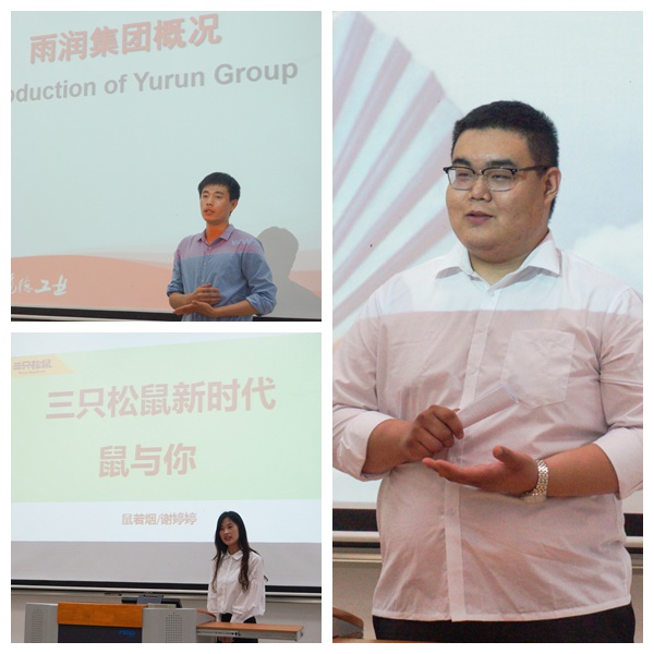 雨润集团经理李聪介绍了雨润集团的发展历史及主要产品。雨润集团拥有国家重点实验室,科研和设施设备条件完善。他表示,雨润集团和365英国上市官网在线共计培养了51名卓工人才,为参与的卓越工程师的同学们日后的科研工作提供了很大的帮助。三只松鼠公司经理谢婷婷介绍了三只松鼠公司的概况,欢迎各位同学加入公司锻炼自己。宏胜集团通过一段视频介绍了集团概况及主要产品,欢迎同学们加入宏胜,成为对社会有益的新型人才。