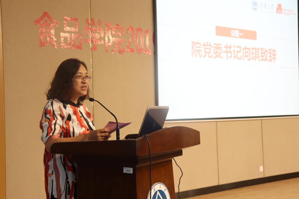 典礼伊始,学院党委书记向琪为开学典礼致辞。首先,向琪对新生的到来表示热烈欢迎和衷心祝贺。她指出,中华人民共和国成立70周年来,取得了举世瞩目的成就,365英国上市官网在线食品学科的建立与发展便是一个缩影。她希望,新时代的大学生应当忠于祖国,用所学服务国家发展;勤于学业,用勤奋夯实专业基础;善于实践,用行动感悟大学之美。