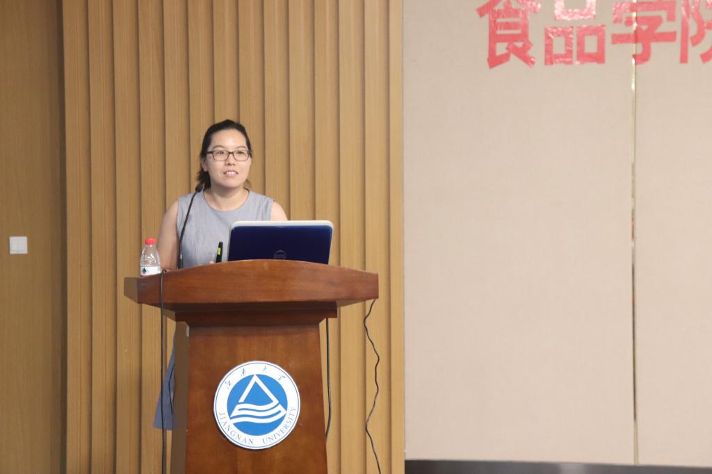 最后,食品科学与工程专业的新生代表佘倩婷发言。她引用纽曼的名言分享了自己对大学的思考与期待,同时也表示要尽快适应大学生活、尽早树立学习目标、全面发展不断完善自我、树立正确的人生观、世界观和价值观。