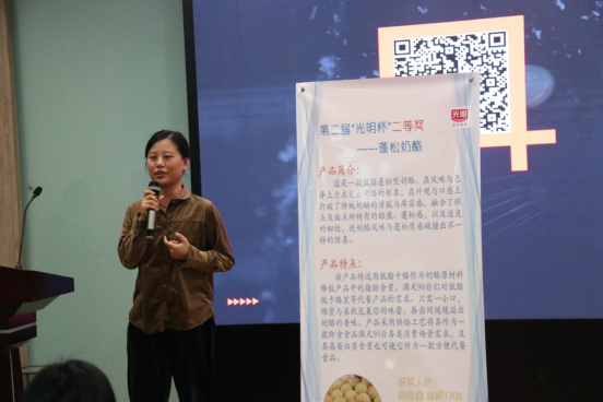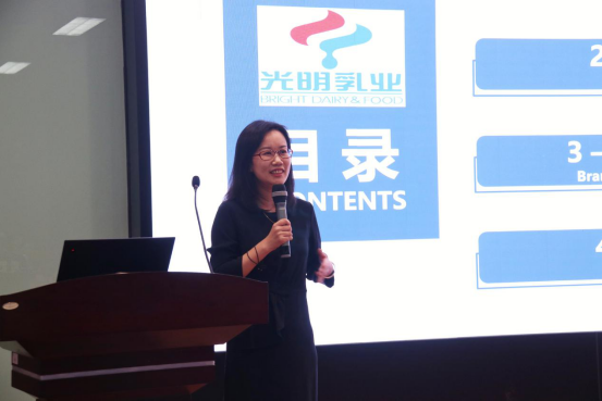 桂敏博士对光明乳业和本次乳品创意大赛进行介绍。从光明公司的整体情况,到当下乳制品市场的概况,她为大家展示了光明现有的系列产品并提出本次大赛的主题“领鲜-创造未来”,为同学们提供了新思路。