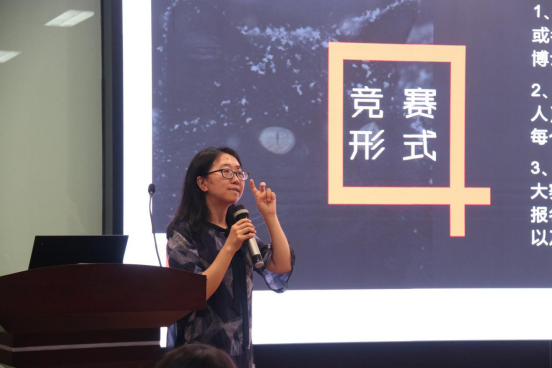 接着,刘小鸣教授从活动宗旨、竞赛主题、竞赛形式、竞赛日程、竞赛流程、奖项设置几个方面为同学们进行了详细说明。上一届光明杯的选手代表陈佳薇分享了参赛经验,强调了合作的重要性,让在场的同学们受到了很大的启发。在宣讲会问答环节中,同学们积极提问,老师们耐心解答。