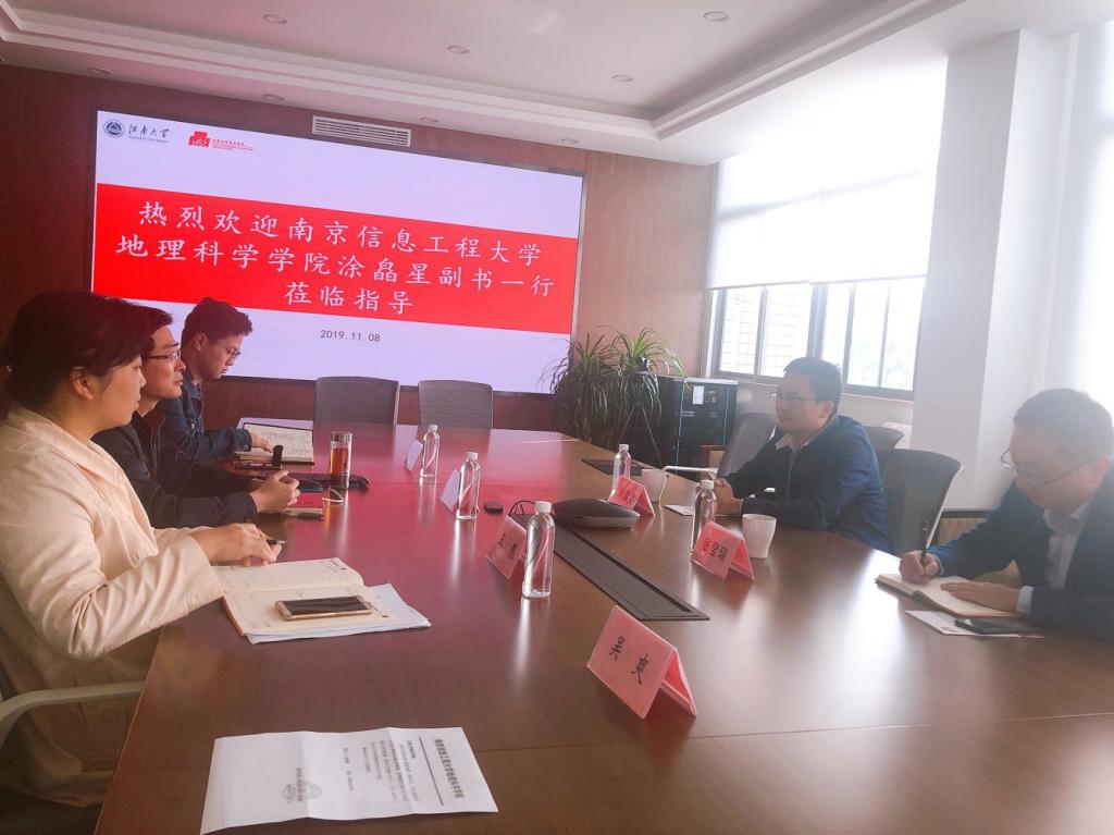 11月8日上午,南京信息工程大学地理科学学院党委副书记、副院长涂皛星、学办主任张莹瑞来我院进行学生工作专题调研。我院党委副书记张文、分团委书记王胤、辅导员朱伟、吴爽参加此次调研座谈会。