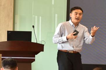 接着,马志强副教授在《智慧教室中的教学评价》教学工作坊中,从“智慧课堂中的教学形成性评价框架、雨课堂评价的基本操作、智慧课堂的教学形成性评价案例”三个方面介绍了如何利用教学过程中实时生成的课前、课中、课后全景数据精确分析学情,以及开展数据驱动评价的目标框架、反馈原则、个性支持策略等主题。讲解过程中,每位培训老师通过扫描二维码登陆微信课堂,参与课件推送、在线测试、答题统计、弹幕答疑等环节的参与互动,真切地感受到信息化教学为传统教学课堂注入的新活力。
