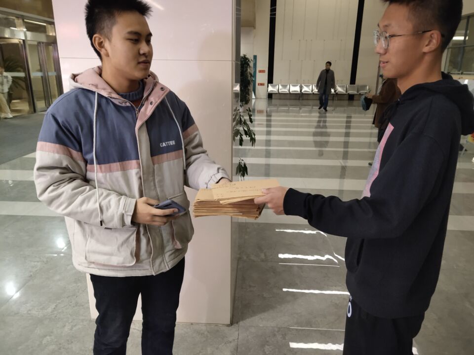 同学们将信件交到工作人员手中