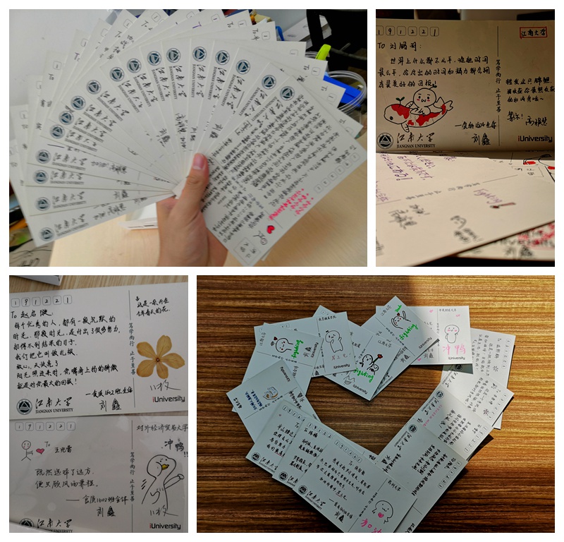 学院为每位考研学子精心准备“物质”+“精神”考研大礼包。具体来说,一是为每人送上一箱营养牛奶,让备战考研的莘莘学子在寒冷的冬天感受来自学院的关爱和温暖;二是全体保研学生为正在备考的学生写下专属明信片,张文副书记、刘鑫老师及16级班主任也为考生送上暖心祝福——“时间是会说话的,所有的努力都不会被辜负!”、“十二月,所有的美好都将如约而至,念念不忘,必有回响!”……一句句温暖又充满力量的话语为考研学子加油打气;三是志愿者同学扮演卡通人物手持“漫漫考研路,不负青春梦”、“食品学子考研必胜”为考研学子加油鼓劲,365英国上市官网在线一楼大厅的考研光荣榜更是为考研学生“树立考研榜样”和“赋予拼搏力量”。