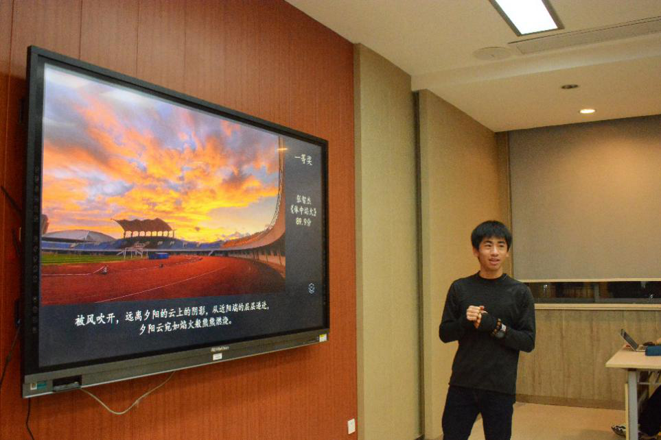 活动一经发起就受到全校同学的热烈响应,比赛期间共计收到参赛作品140组。经过初筛、大众评审、专业评审和线上投票等环节的层层选拔,最终分别筛选出“破晓”、“日中”、“黄昏”、“夜色”四个专题的一二三等奖及八名优胜奖。颁奖典礼上,获奖同学纷纷介绍了自己的创作灵感,在这些光影定格的精彩瞬间中,有实验途中偶遇的奇幻风景,清晨仪仗队整齐划一的升旗仪式,训练结束后中心体育场的火烧云,图书馆顶楼的无限风光等等,大家不禁感叹江大校园之美,日日虽循环往复,却也各有千秋。每一张图片背后都藏着一个小故事,镜头下江南的一草一木都体现着同学们对校园的热爱。