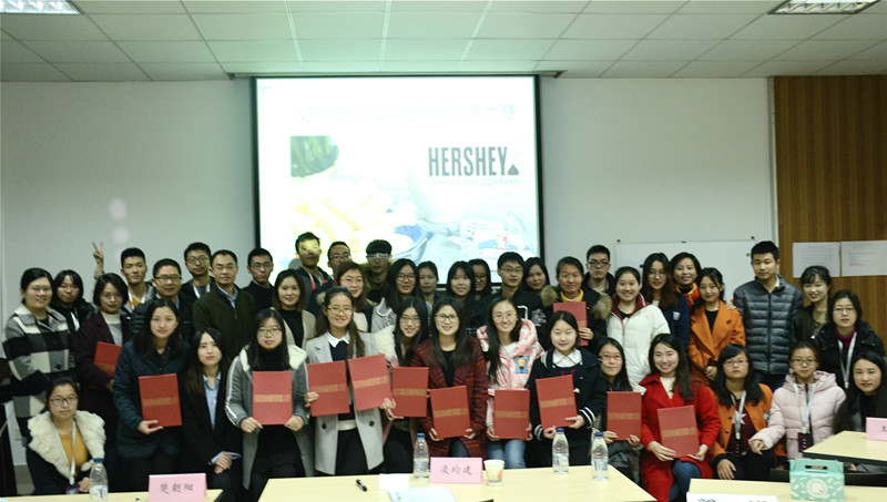12月6日,由365英国上市官网在线科技创新协会主办的好时金丝猴学生产品创意大赛在食品365英国上市官网在线双兔厅举行。365英国上市官网在线分团委书记王胤,副书记张越,好时(上海)食品研发有限公司代表凌均建先生、楚朝阳先生、杨晓倩女士作为大赛评委莅临大赛现场。