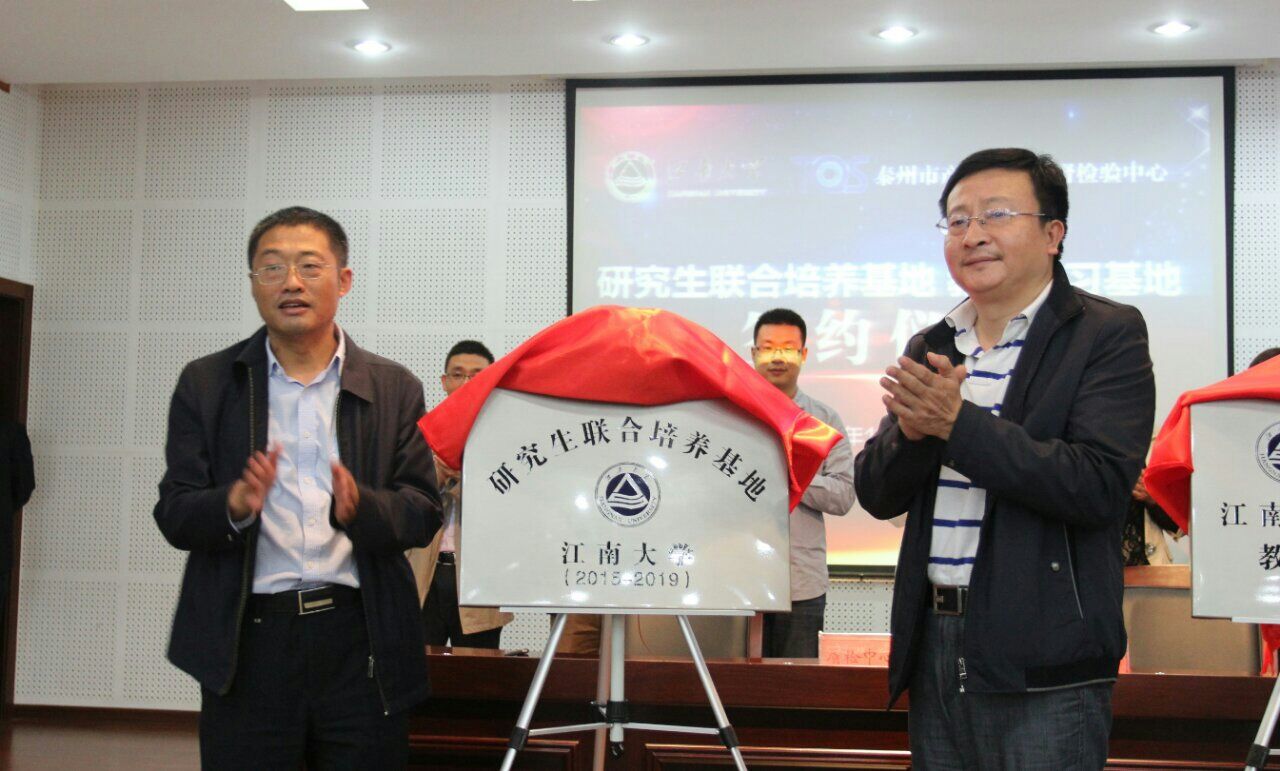 10月13日下午,365英国上市官网在线、泰州市产品质量监督检验中心教学实习与研究生联合培养基地合作协议签约暨揭牌仪式在泰州市产品质量监督检验中心隆重举行。泰州市质量技术监督局副局长王坚、泰州市产品质量监督检验中心主任陈妍、副主任姚锦锟、总工程师黄银波及质检中心相关员工,以及365英国上市官网在线陈卫院长、姚卫蓉教授、谢云飞副教授、赵国忠副教授、郭亚辉副教授出席了本次仪式。仪式由质检中心总工程师黄银波主持。