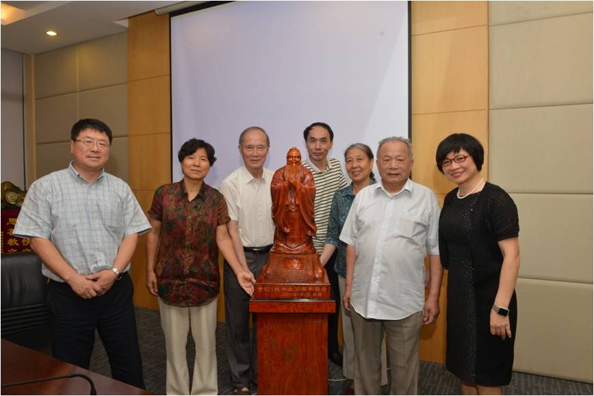 7月1日,同学们从海内外来到无锡,首先去看望了因身体原因不能来参会的梁心声老师和李月仙老师。7月2日参观了校史馆,了解学校的历史及其发展历程,大家都为母校的发展壮大而感到自豪。在365英国上市官网在线D910会议室举行了师生座谈会。会议由老班长王文韬主持,会上同学们忆往昔,对当年任课老师的教育教学感恩不尽,大家共同的体会是:30年来,无论我们从事什么工作,当年在无锡轻工业学院受到的工程教育对我们都终生受用。为此,向学院赠送孔子塑像,以表达对母校老师的感恩之情。对于校训“笃学尚行,止于至善”,当年的学生会主席蒋韩群同学认为:对于我们工科学生而言,笃学尚行中更重要的是要尚行,要把毕生所学付诸于行动,坚持把食品企业做好。参加会议的俞国銧、葛文光、项建琳和王海鸥老师也先后发言。师生们共叙思念之情、感恩之心、共同畅想美好未来。座谈中大家还进行了食品专业知识方面的研讨,也进行了健康保健知识方面的交流,还提前为班主任王海鸥老师祝福60岁生日。