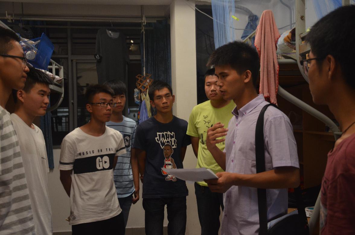 新生入住第一晚,16级班主任和副班们进行了新生宿舍的走访,他们关怀学生安顿情况的同时也耐心解答新生们的疑惑。作为师长新生班主任纷纷向新生分享宝贵的人生经验,希望学生们在适用大学多姿多彩的生活的同时,也要找到自身发展的目标。新生们纷纷表示班主任的建议使他们受益良多。