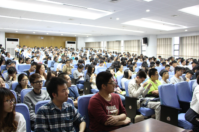 报告开始前,王维老师介绍本次报告会的主讲嘉宾陈俨少将,并指出,南海问题是我国外交的重点之一,同学们应该深度关注、认真了解国家的外交形势。报告会上,陈将军结合自身经历和多张精美图片,讲述南海问题的历史由来、南海争端的现状与趋势、关于未来海上安全的若干思考。作为中国摄影家协会会员,陈将军通过一幅幅精美的照片向大家介绍了南海复杂的地质地理状况,用一个个生动鲜明的事例阐述了南海的重要战略地位以及南海争端的深层原因。