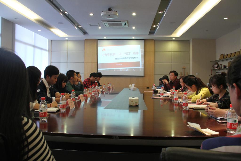 座谈会上,青年学生代表畅所欲言,气氛热烈。学生组织主要负责人吴雪莹、魏善康、李一关、金铖分别就研究生会、学生会、学生党团工作情况交流汇报,并就学风建设推进、人文素养提升、公民意识教育等工作提出建议。全国示范团支部食科1202原团支书、全国高校践行社会主义核心价值观“百佳团支书”张婷婷同学就基层团支部建设问题交流分享,并建言学弟学妹早做职业生涯规划。校运动会男子200米、400米冠军吴孟菲同学建议学院应该进一步营造体育活动氛围,提高师生参与度。F-club成员顾皞宇同学就篮球队发展方向、球队发展机制推广问题建言献策。学院新媒体工作室负责人、食品小微工作组负责人张蒙同学介绍了着力打造的“能先生与惠小姐”、“导师正青春”等项目设计,并希望获得更多教师资源参与到线上师生互动中;优秀毕业生代表张班敏璐同学介绍了12级求职“狐狸小分队”在求职过程中的“利他主义实验”,并回顾了自己担任F-club职业经理人的青春经历。