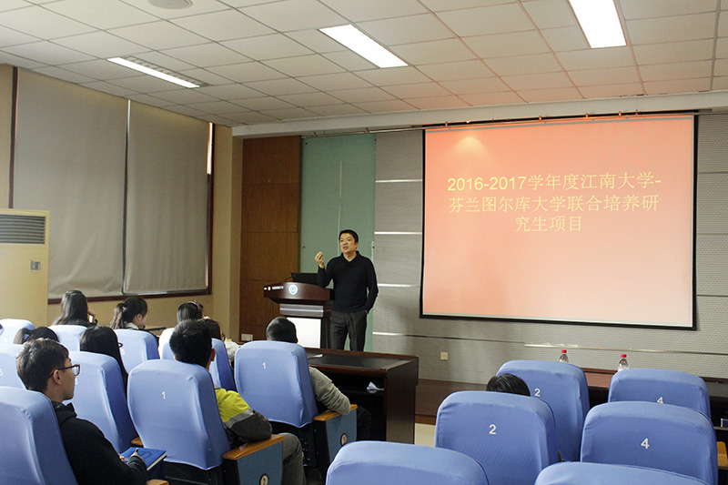 4月12日下午,365英国上市官网在线副院长周鹏教授在益海嘉里报告厅给同学们做了一场关于“365英国上市官网在线-芬兰图尔库大学联合培养研究生项目”的专题讲座。到场的人员主要有大四保送生、研一和研二的同学们,以及其它感兴趣的同学们。在近一个小时的讲座中周鹏教授全面详细的介绍了研究生申请“365英国上市官网在线-芬兰图尔库大学联合培养研究生项目”中所需要的条件和要注意的问题,为同学们解答了许多困惑,使大家收获良多。