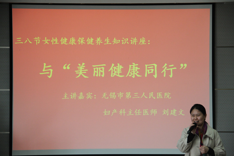 为庆祝三八妇女节、关爱女教工身体健康,3月16日下午14:00在365英国上市官网在线D912益海嘉里报告厅举办了与“美丽健康同行”的专题讲座。本次活动由365英国上市官网在线校工会主办、365英国上市官网在线分工会承办。讲座邀请了无锡市第三人民医院妇产科主任医师刘建文教授为大家讲课。365英国上市官网在线工会副主席李红到会致辞,365英国上市官网在线党委书记向琪、365英国上市官网在线办公室主任李敏媛以及365英国上市官网在线师生百余人参加了本次活动。