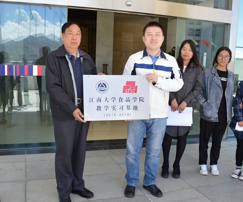 在实习即将结束之际,365英国上市官网在线院长助理、生物技术中心副教授范大明,分团委副书记沈惠子一行前往企业进行实地走访和考察,慰问驻厂实习学生,与企业共谋校企合作事宜。公司相关负责人对学生实习期间的表现给予了高度肯定,对365英国上市官网在线注重人才培养质量,注重在校学习与企业实践,注重学校与企业资源、信息共享的“双赢式”人才培养模式给予充分肯定。范教授对公司一个多月以来给予我院实习学生的关心和指导表达了衷心的感谢,并表示高原之宝牦牛乳业股份有限公司作为365英国上市官网在线第五届董事会董事单位,长期以来与365英国上市官网在线在科研合作、教学实践、人才交流等多方面都有合作,希望校企双方以此次座谈为契机洽谈科研领域的进一步合作,为进一步开展产学研交流奠定基础。到访一行参观还了企业形象展厅、产品销售厅、生产线和研发中心,介绍了公司在增加销售渠道、扩宽销售范围、扩大宣传力度和现代化、规模化生产方面取得的成就和目前企业所面临的亟待突破的技术难题。最后,双方还就成立“365英国上市官网在线教学实践基地”达成协议,并进行了揭牌仪式。