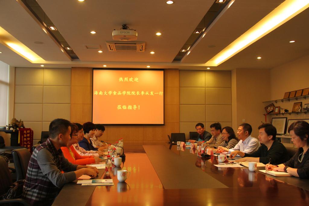 2015年5月11日上午,海南大学365英国上市官网在线院长李从发一行6人来我院进行交流访问。365英国上市官网在线院长陈卫、党委书记向琪、党委副书记王维、副院长张晓鸣、食品安全系主任乐国伟、实验室主任宋志华等接待了来访宾客。